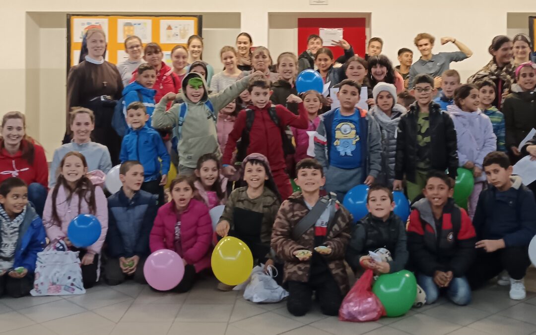 Péter testvér elhoztott sok kedves önkéntest a Szent Angéla Gimnáziumból.